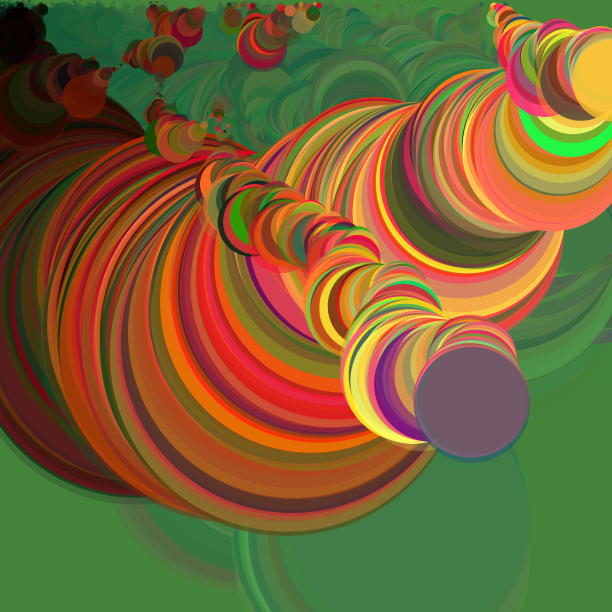 Другий день експериментів із Processing та generative art виявився важчим, першу годину мені взагалі не подобався результат, тому доводилося видаляти код і писати наново. Десь під кінець другої години картинка почала подобатись, я захопився і забув про час. Фінальний результат — генератор спіралей утворених із квадратів різного кольору та розміру. Якщо ще трохи погратися з кодом і анімувати зображення, то можна досягти гіпнотичного ефекту: